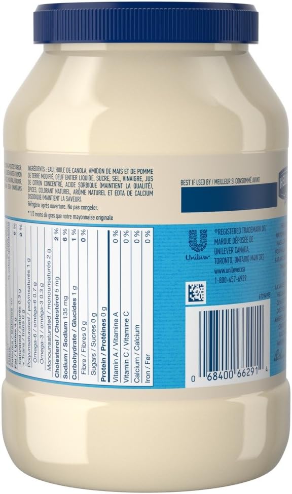 Hellmann's mayonnaise ingredients label. Amazon.com : Hellmann's Vegan Mayonnaise Jar Made with Non GMO Sourced ... Hellmann's Vegan Mayonnaise has real ingredients and real taste to bring excitement to plant-forward dishes. Ideal as a Condiment or Ingredient . With its perfectly balanced flavor, Hellmann's Vegan Mayonnaise has an indulgent, creamy flavor that is sure to leave guests with a positive impression. ... No label, no description, no markings on ... Hellmann's Real Mayonnaise Allergy and Ingredient Information INGREDIENTS and MAY CONTAIN STATEMENTS:Signup to Read the Label. It looks like Hellmann's Real Mayonnaise is Free From a total of: 10 different TOP 14 Allergens. We found 25 other products Made By Hellmann's that either contain or have been processed in a facility with 5 other TOP 14 allergens. Hellmann's, Olive Oil Mayonnaise Dressing - SmartLabel™ Hellmann's, Olive Oil Mayonnaise Dressing. 30 FL OZ (1 PT 14 FL OZ) 887mL . 048001204362. Nutrition. Ingredients. ... Please refer to the label on your product for the most accurate nutrition, ingredient, and allergen information. Information updated on 09-Feb-2021 by Hellmann's. Manufactured By Unilever. Distributed By Unilever Englewood ... Hellmann's, Light Mayonnaise - SmartLabel™ - Unilever Total Fat 3.5 g 4% Saturated Fat 0.5 g 3% Polyunsaturated Fat 2 g Monounsaturated Fat 1 g Sodium 110 mg 5% Total Carbohydrate 1 g 0% Protein 0 g Not a significant source of trans fat, cholesterol, dietary fiber, total sugars, added sugars, vitamin D, calcium, iron and potassium.