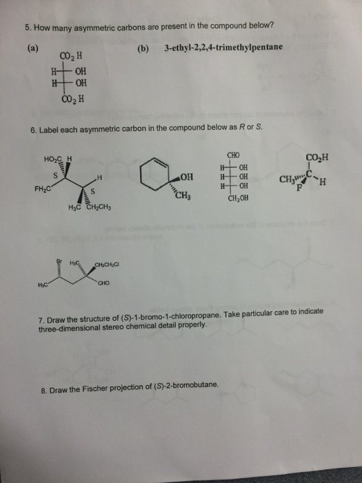 How many asymmetric carbons are present in the compound below? CHI ... How many asymmetric carbons are present in the compound below? CHI OH MICE CCH Answer: 5 13.Label each asymmetric carbon in the compound… Show more Science Chemistry Share QuestionEmailCopy link This question was created from Exam2-PRACTICE-ANSWERS-F16 Comments (0) Share this entry
