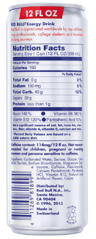 Red bull 12 oz nutrition label