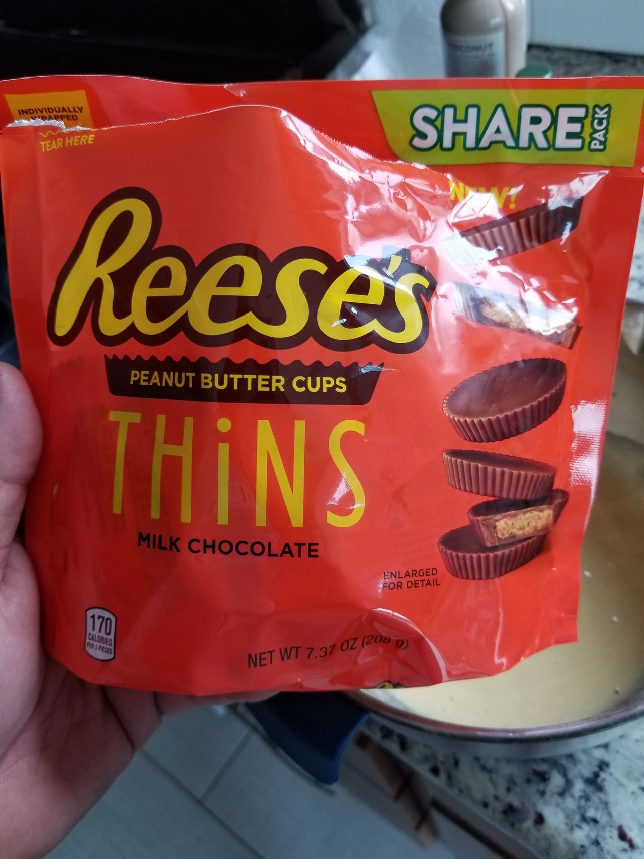 REESE'S - Thins Dark Chocolate Peanut Butter Cups - SmartLabel™ Thins Dark Chocolate Peanut Butter Cups. net wt. 3.1 oz. 00034000460649. Nutrition . Ingredients . Allergens . ... % Daily Value (DV) tells you how much a nutrient in a serving of food contributes to a daily diet. 2,000 calories a day is used for general nutrition advice. . . . . . . ... REESE'S Information confirmed ... Reese's THiNS calories, carbs & nutrition facts | MyFitnessPal ... Find calories, carbs, and nutritional contents for Reese's THiNS and over 2,000,000 other foods at MyFitnessPal. Log In Sign Up. About. Food. Exercise. Apps. Community. Blog. Premium Reese's Reese's THiNS. Serving Size: 1 g. 170 Cal. 44% 20g Carbs. 49% 10g Fat. 7% 3g Protein. Track macros, calories, and more with MyFitnessPal. Join for free ... Reese's Thins White Créme Peanut Butter Cups - 7.37oz Reese's Thins White Créme Peanut Butter Cups - 7.37oz $4.39When purchased online In Stock Add to cart About this item Highlights Contains one (1) 7.37-ounce share pack of REESE'S THiNS White Creme Peanut Butter Cups Candy Treat yourself to a REESE'S THiNS candy for a midday treat, movie night snack or after-dinner dessert